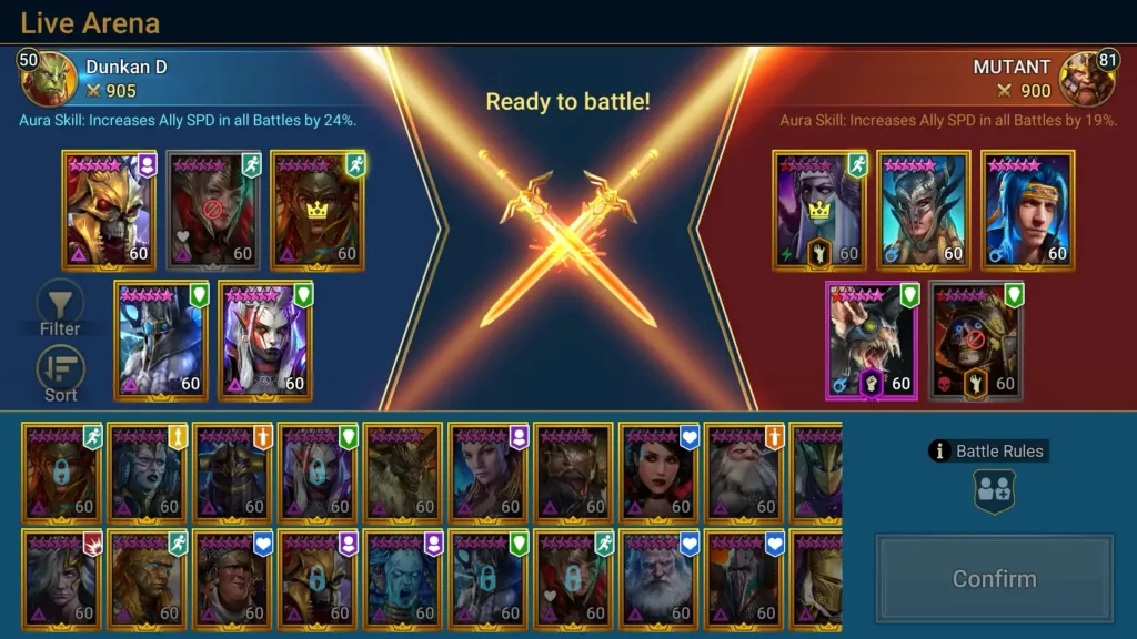 Brawl with other players in fierce Arena battles! Dominate your competition, climb Tiers, and earn valuable rewards in both live and asynchronous PvP battles. Soar up the rankings to earn better loot and the respect of your enemies.